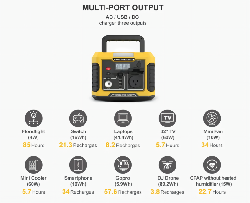 ლითიუმის ბატარეა დიდი ტევადობის 500 ვატიანი პორტატული ელექტროსადგური